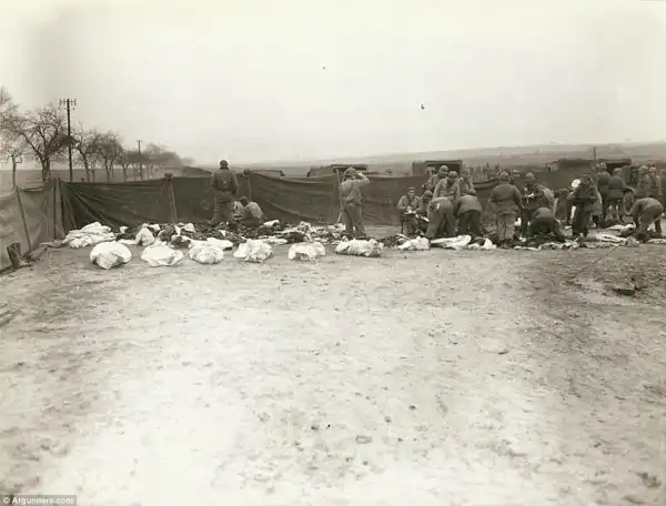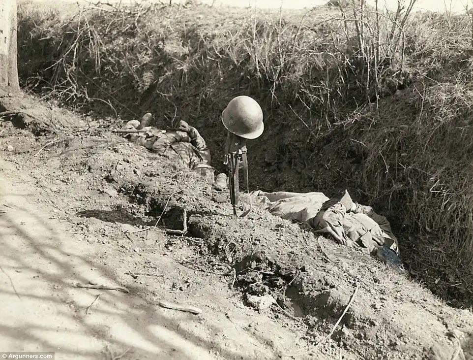 Тела погибших пехотинцев в канаве недалеко от Саарбрюккена.