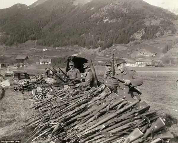Венгерские солдаты сдаются в плен 7-й армии США в городе Гармиш-Партенкирхен в Баварии, где до войны проходили Олимпийские игры.
