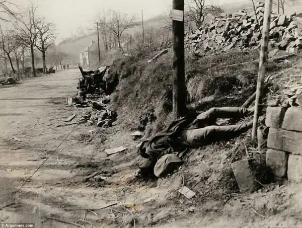 Тела немецких солдат после прорыва линии Зигфрида 7-й армией США.