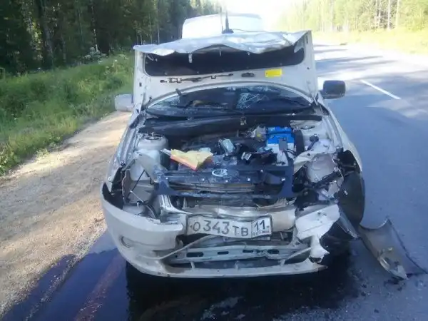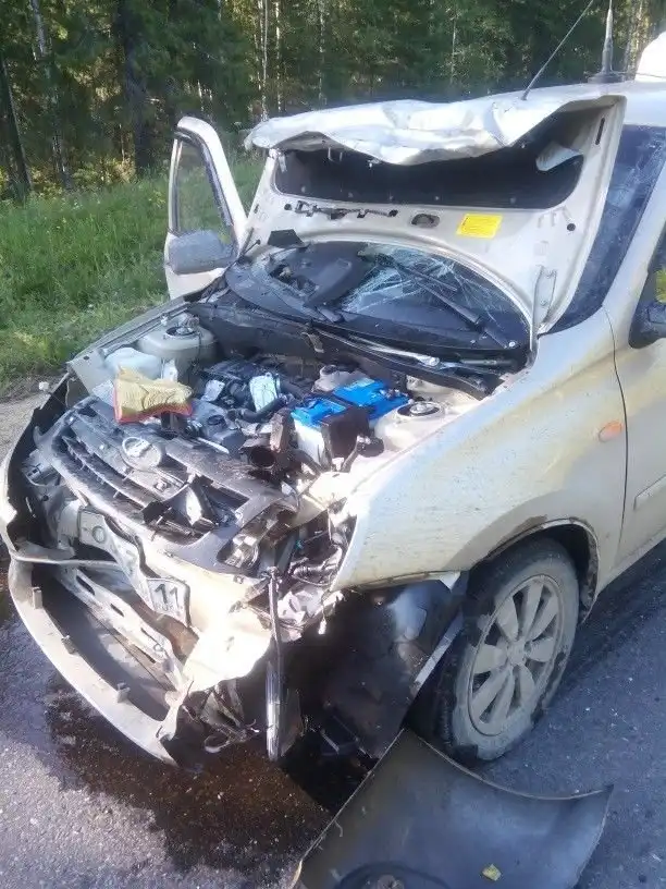 Мужик по пустующей трассе и особо не напрягался, потому как машин на горизонте видно не было. Но внезапно из леса выбежал медведь, и столкновения было не избежать. Машину помяло изрядно, но животному досталось куда больше - медведь не выжил.