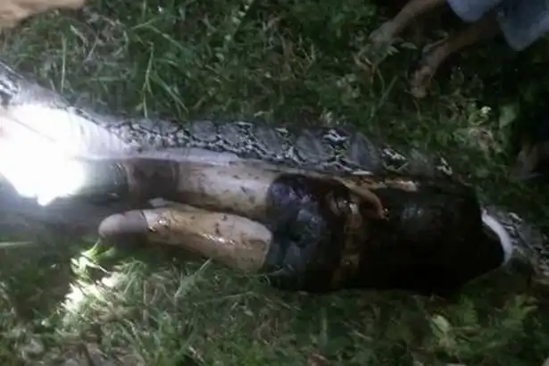 25-летний Акбар Салубиро из отдаленной деревни на западе острова Сулавеси, Индонезия, отправился на сбор урожая пальмового масла и пропал без вести. Друзья, организовавшие его поиски, обнаружили в саду Акбара 7-метрового питона с разбухшим брюхом. Каково же было потрясение местных жителей, когда при вскрытии змеи они увидели тело Салубиро.