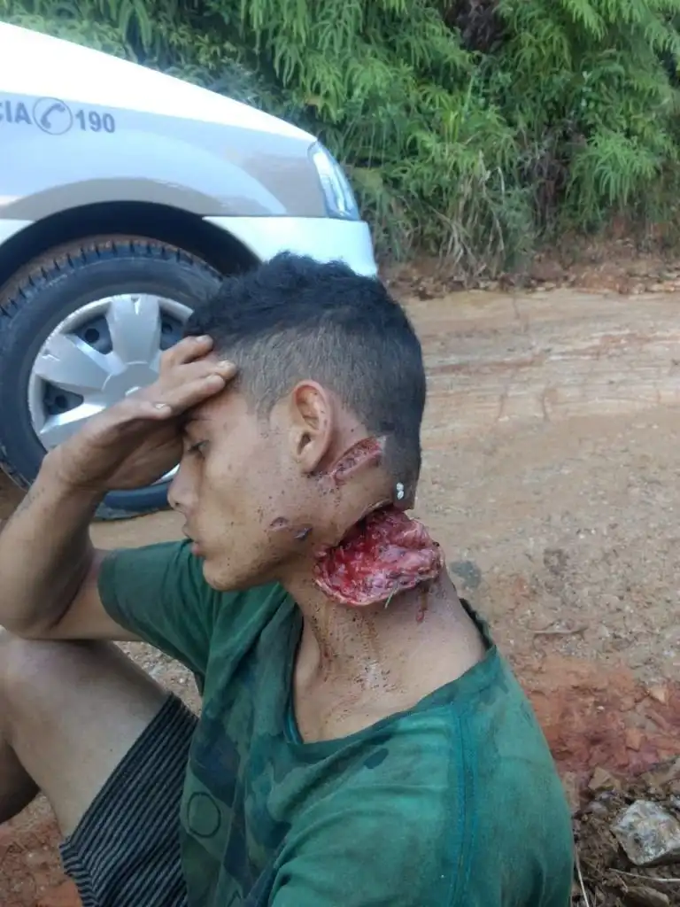 Бразильские полицейские обнаружили на обочине дороги парня с наполовину перерезанной шеей. Несмотря на страшную рану, юноша по имени Пабло Патрик де Соуза оставался в сознании и сумел рассказать, что произошло. По словам Пабло, на него напали трое мужчин и, отобрав мобильный телефон, попытались его обезглавить.