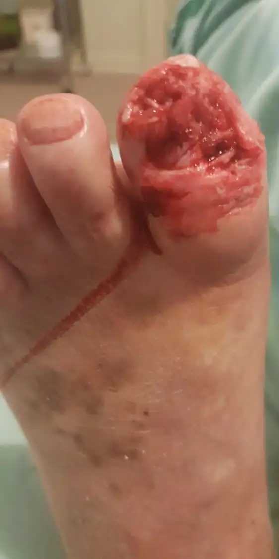 2 года назад чихуахуа сгрыз большой палец на правой ноге своего хозяина, Тома Джонстона, который страдает сахарным диабетом и не чувствует конечностей. Недавно мелкий гад добрался и до большого пальца на левой ноге Тома. Палец пришлось ампутировать. Примечательно, что мужчина хотел отдать собаку после потери первого пальца, но жена ему категорически отказала.