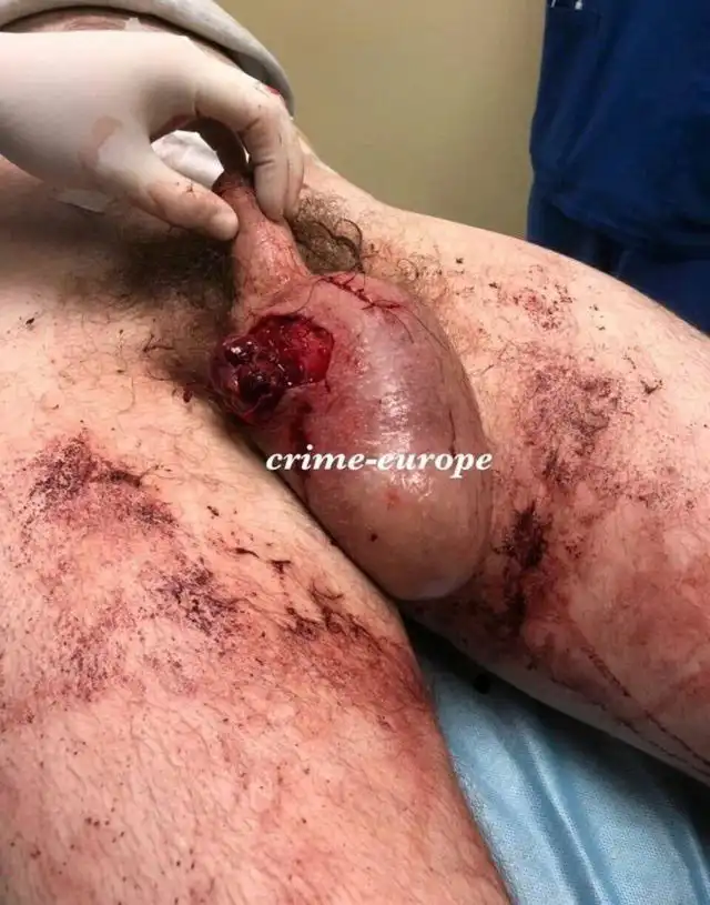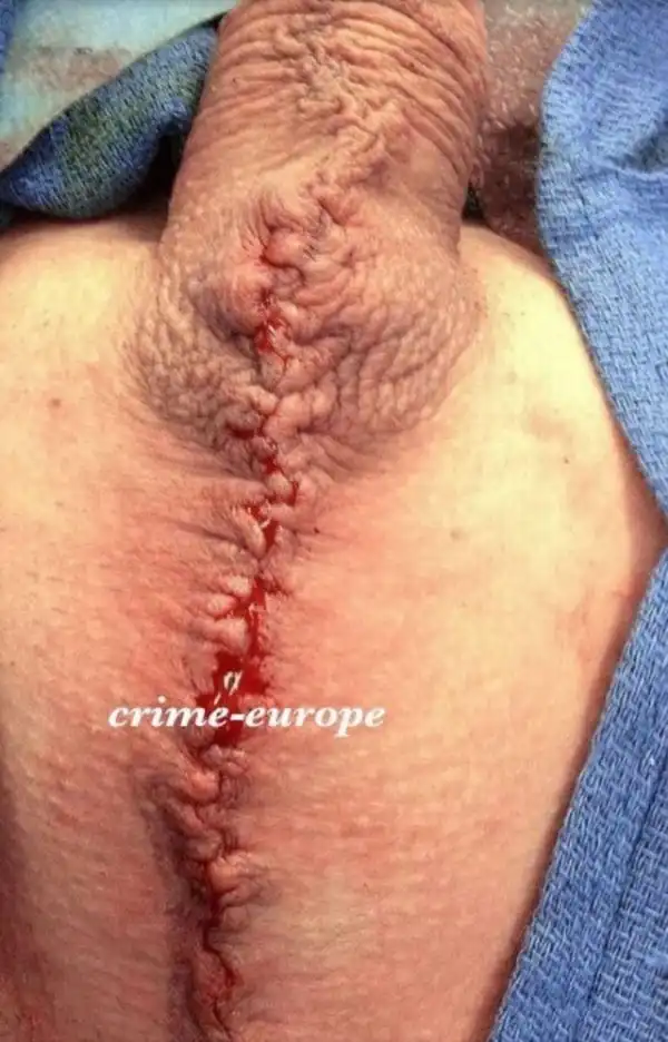 На этом Жанна не остановилась и взяв скальпель, она разрезала его мошонку,достала яички и начала делать на них надрезы. В какой то момент, пошло обильное кровотечение и Жанна решила таки отвезти его в больницу, где она и была арестована.